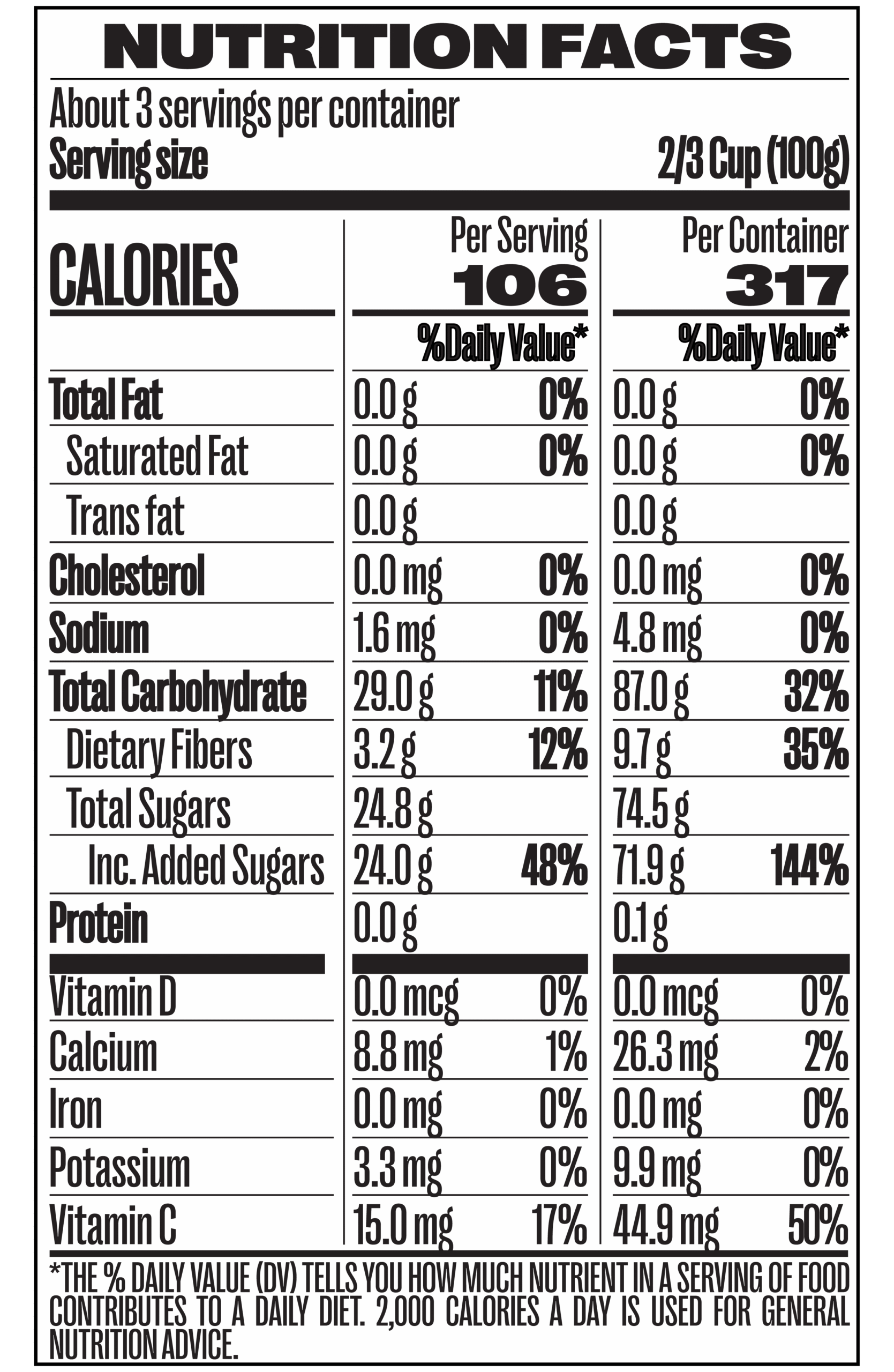 lemon juice (water, lemons), cane sugar*, tapioca fiber*, acacia fiber*, carob fiber*.